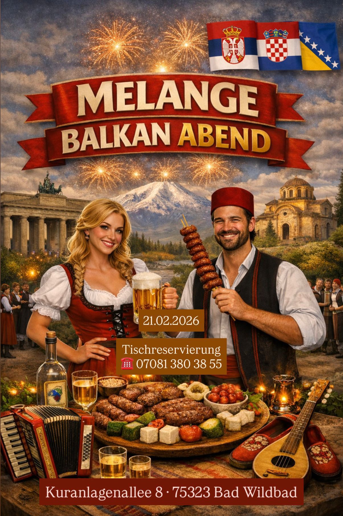 Reservieren Sie jetzt Ihren Platz für einen unvergesslichen Balkan-Abend im Restaurant Melange am 21. Februar
